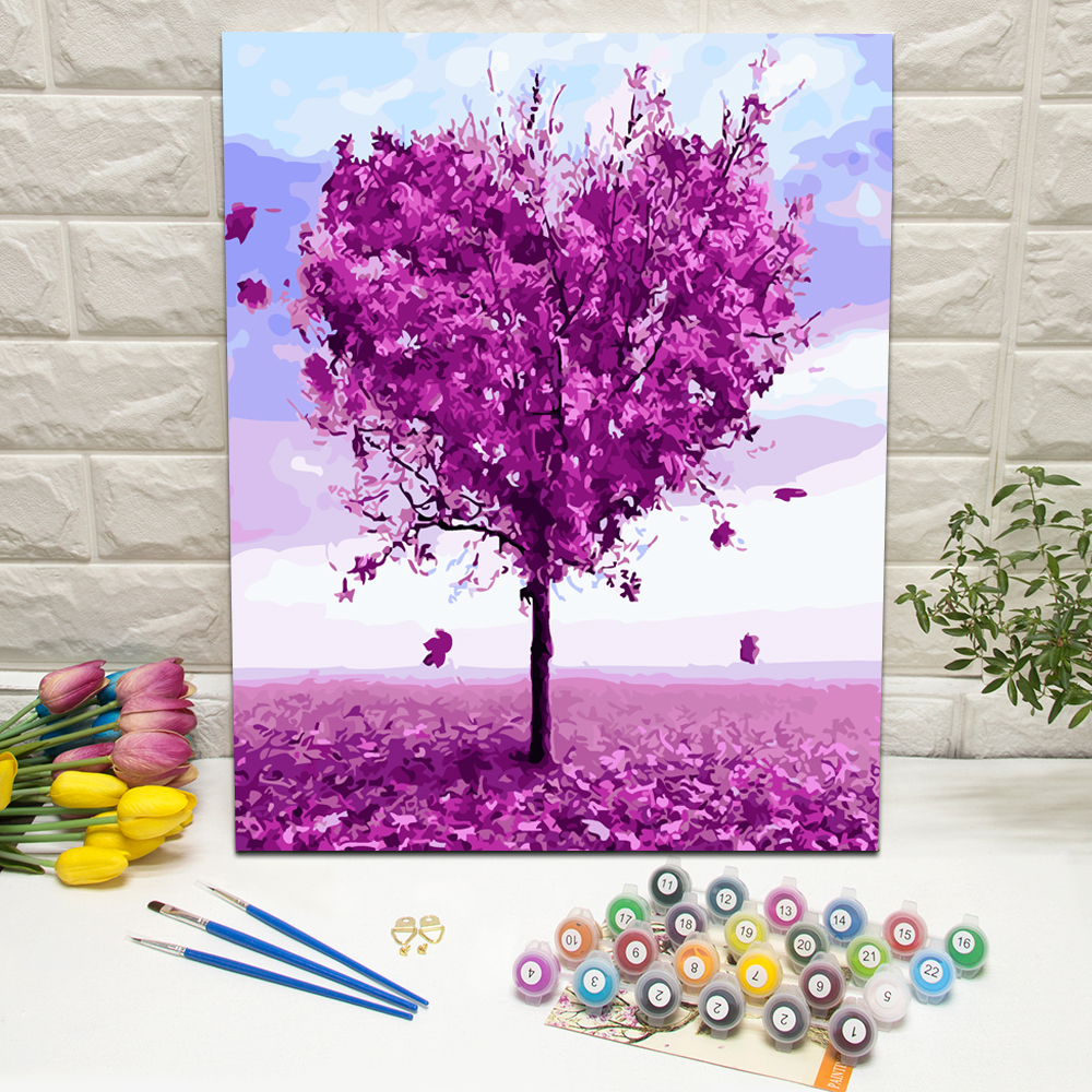 Pakken består af kanvas med felter der er nummereret og opspændt på en træramme 40x50 cm.