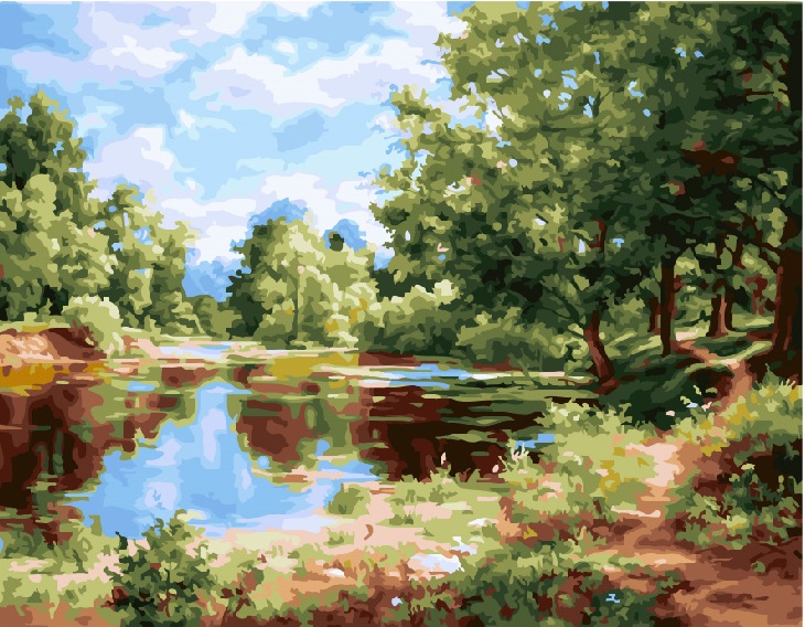 Pakken består af kanvas med felter der er nummereret og opspændt på en træramme 40x50 cm.