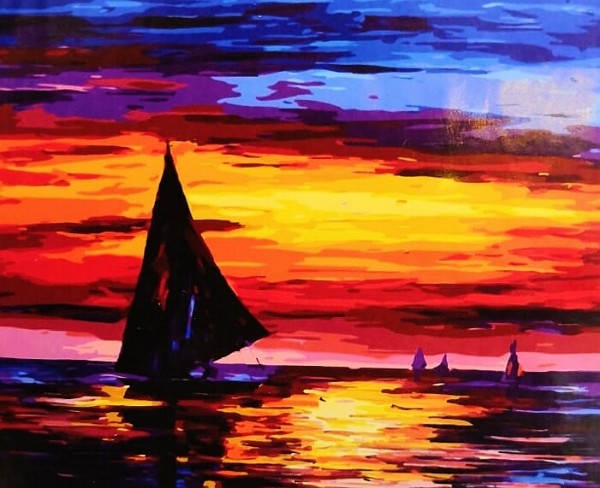 Pakken består af kanvas med felter der er nummereret og opspændt på en træramme 40x50 cm.