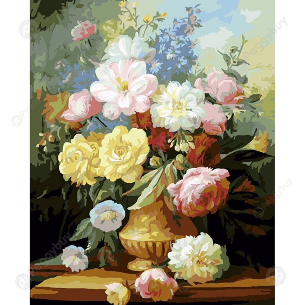 Pakken består af kanvas med felter der er nummereret og opspændt på en træramme 40x50 cm.