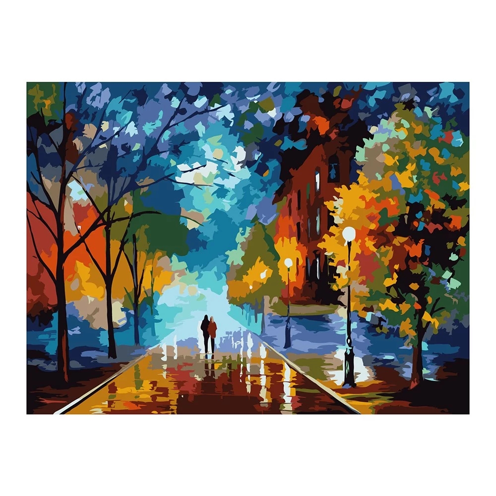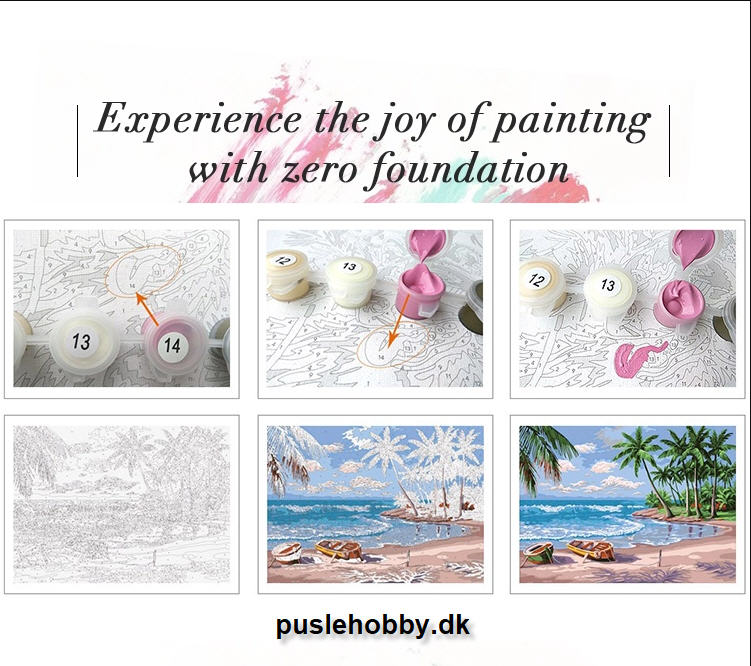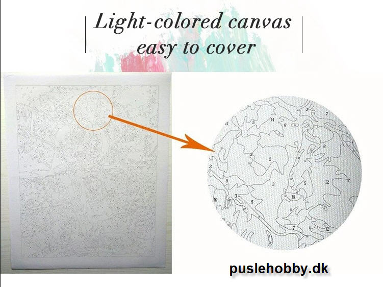 Pakken består af kanvas med felter der er nummereret og opspændt på en træramme 40x50 cm.