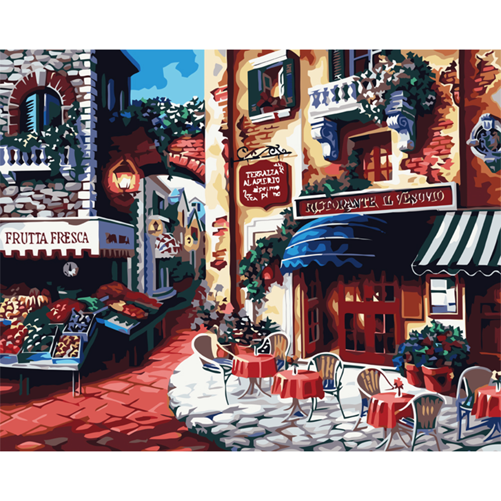 Pakken består af kanvas med felter der er nummereret og opspændt på en træramme 40x50 cm.