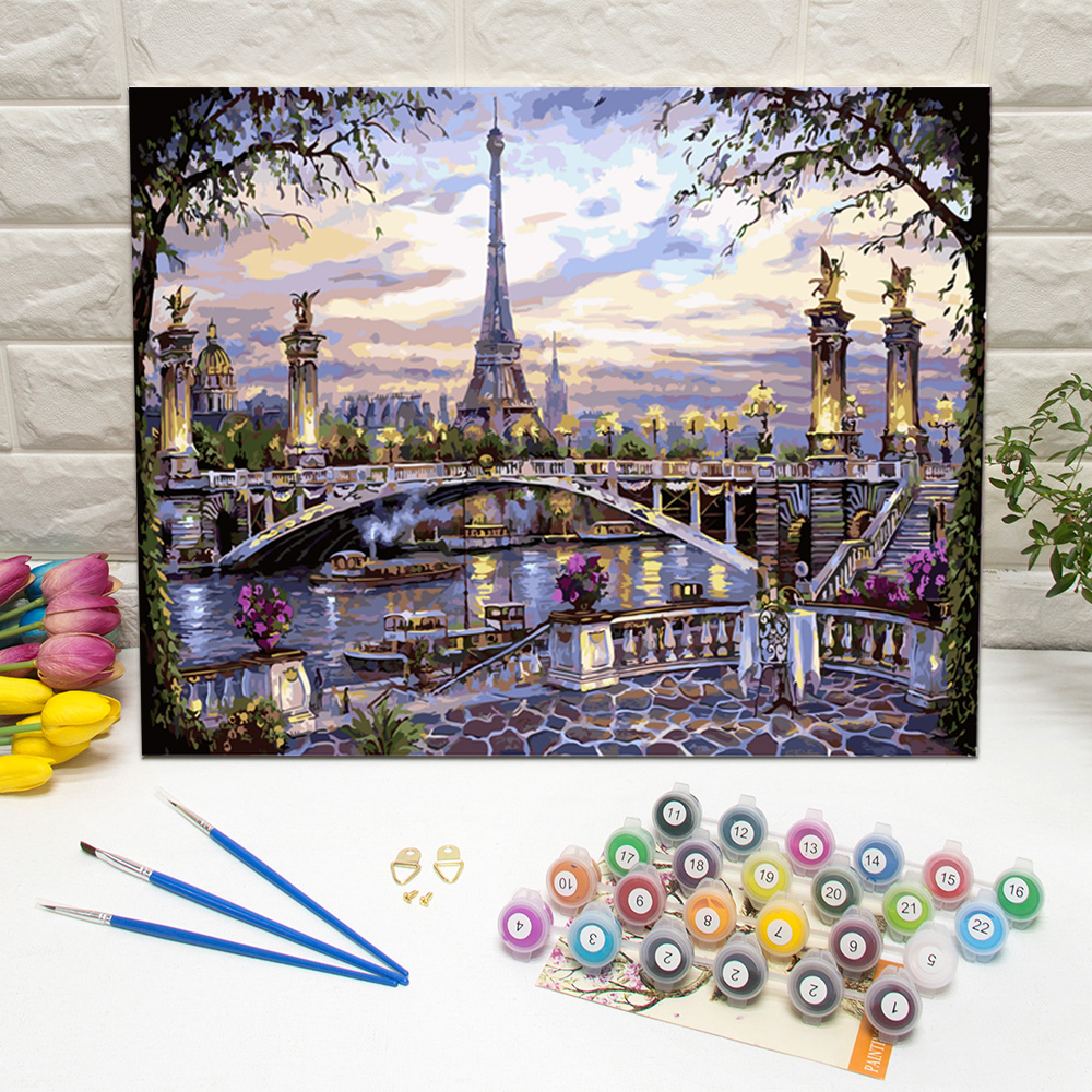 Pakken består af kanvas med felter der er nummereret og opspændt på en træramme 40x50 cm.