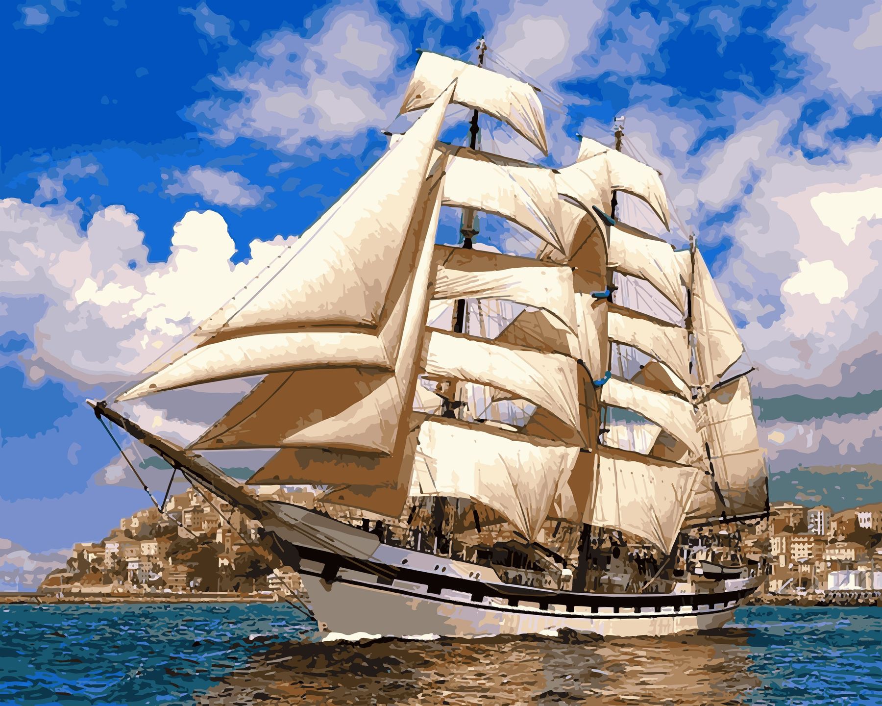 Pakken består af kanvas med felter der er nummereret og opspændt på en træramme 40x50 cm.