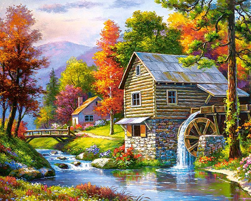 Pakken består af kanvas med felter der er nummereret og opspændt på en træramme 40x50 cm.