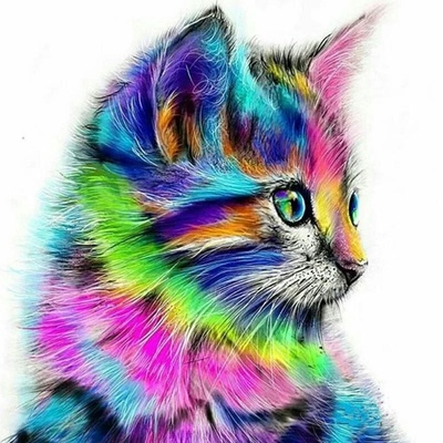 Maling i bøtter mærket med tal som passer til de felter de skal benyttes i på kanvasset. Malingen er vandbaseret, og kan fortyndes med nogle dråber vand hvis man synes den er lidt tyk at male med.